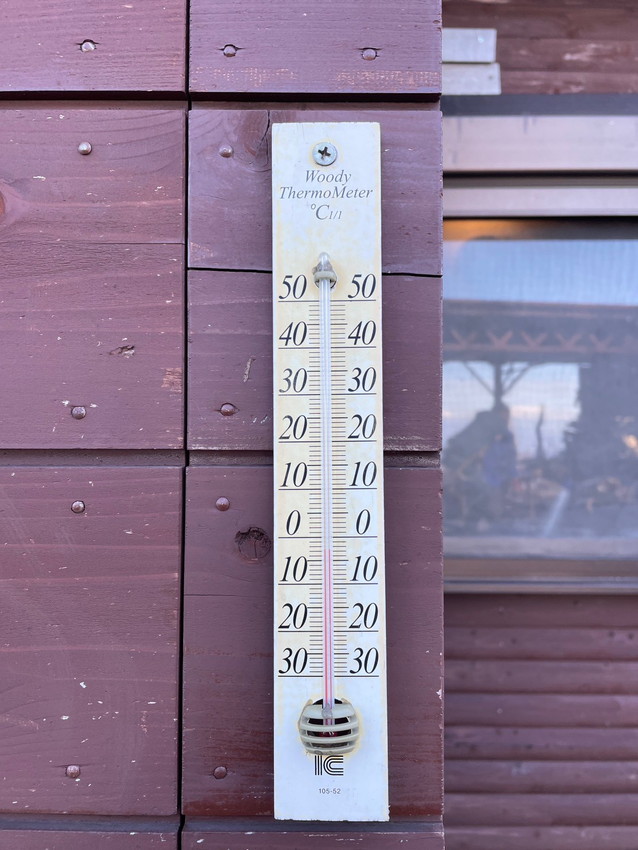 - 一日目:登山靴→チェーンスパイクと変えながら雪が氷になった登山道を歩く。小屋到着時、気温は−4°