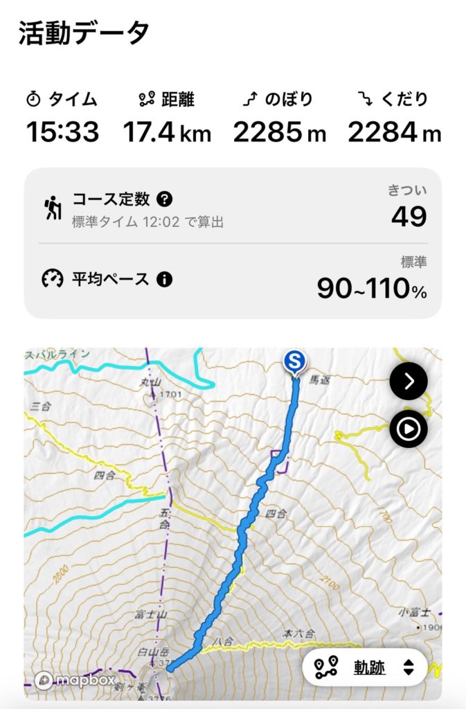 | 1日目:晴 1合目〜5合目佐藤小屋まで。 2日目:晴 午前4時20分出発。佐藤小屋~山頂までの往復。佐藤小屋に15時到着。 3日目:晴 佐藤小屋8時12分出発→馬返駐車場到着。 |