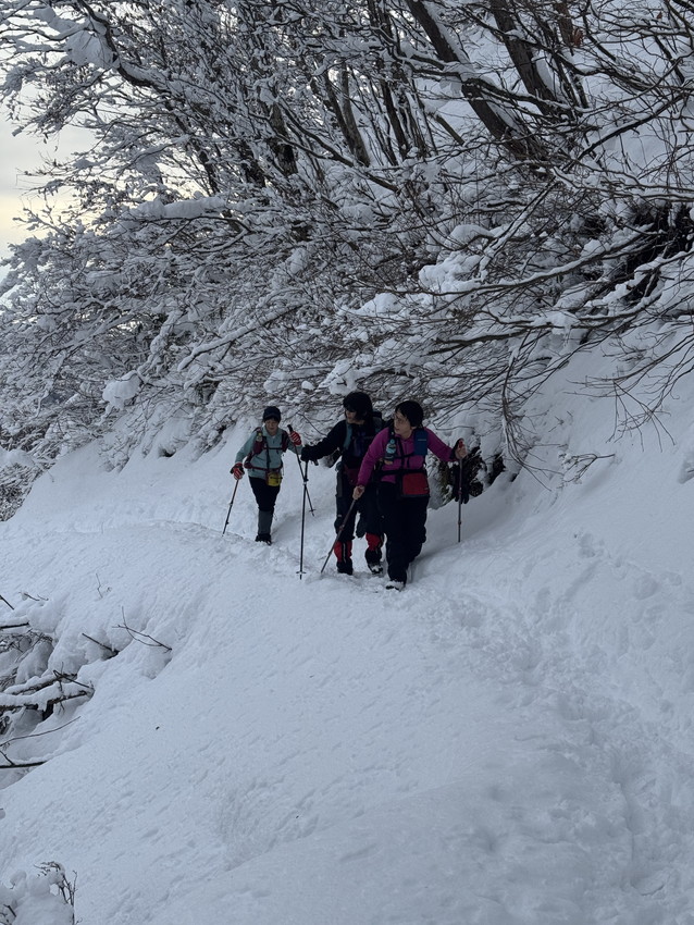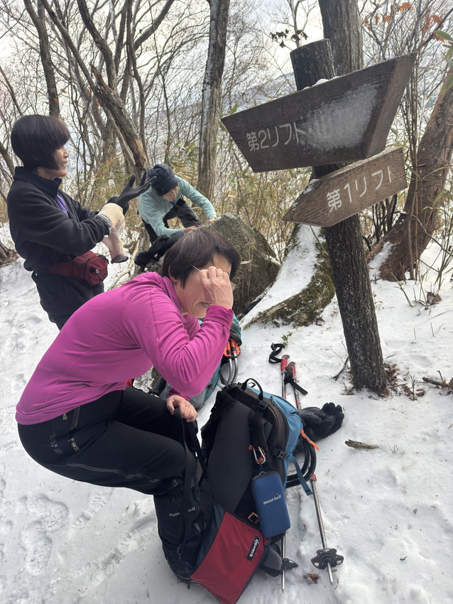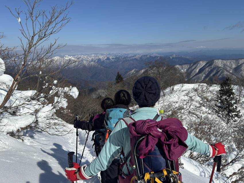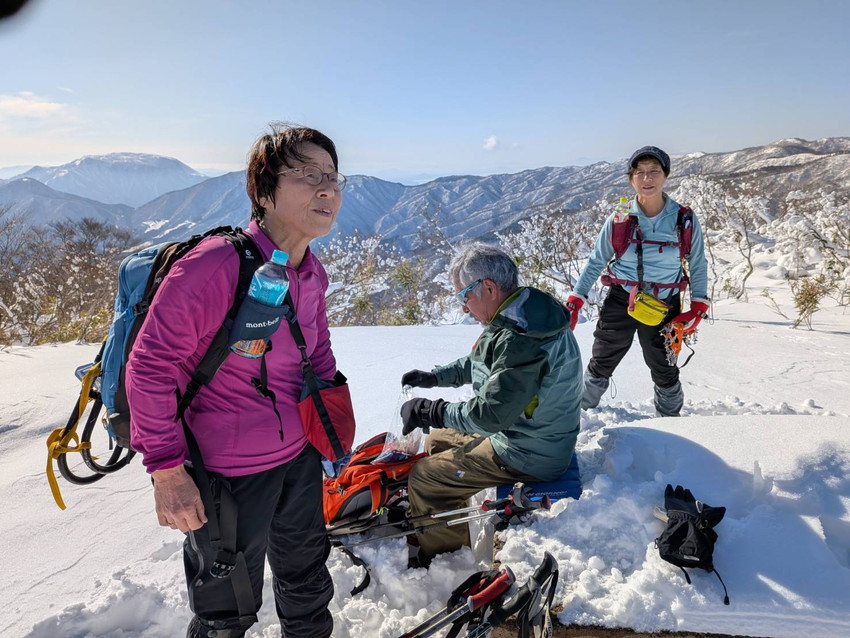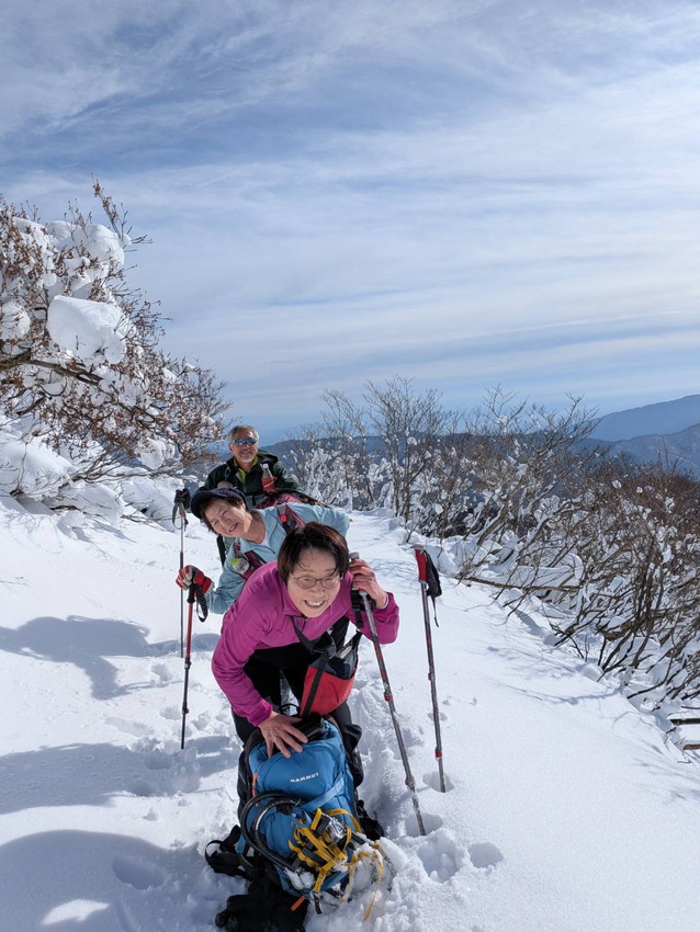 - 天気も良く、雪も良く、霞んではいましたが遠く御嶽や乗鞍が一望できました。平日なのにたくさんの方々が登ってみえてました。下山途中にゲイターの金具に雪が付き雪だるまのようになり途中で取りましたが、最後までツボ足で歩け楽しい雪山山行でした。ありがとうございました。
