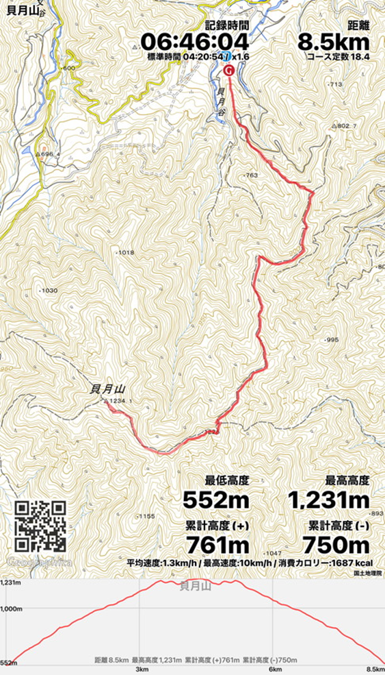 | JAいびがわ7:00⇒揖斐高原キャンピングフィールド8:00→小貝月山10:30→貝月山11:15~12:00→登山口14:30⇒JAいびがわ15:30 |