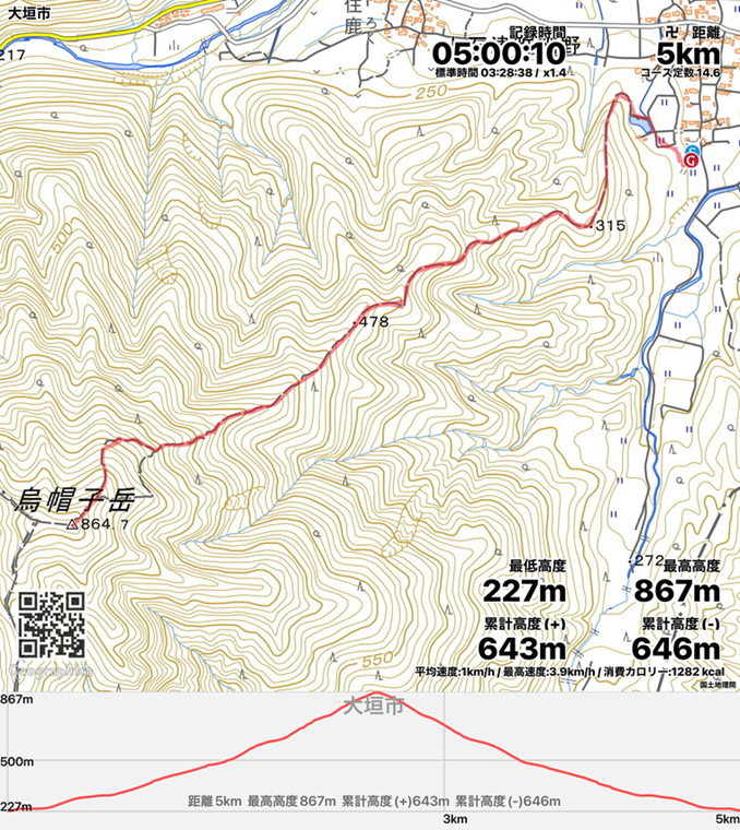 | 一ノ瀬ポケットパーク7:00⇒細野登山口7:30→烏帽子岳10:00~10:50→登山口12:20 |