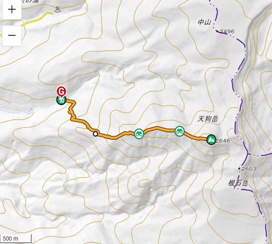 | 唐沢鉱泉登山口8:55~第一展望台10:50~第二展望台11:20~西天狗岳12:20~第二天望台13:05~第一展望台13:40~唐沢鉱泉登山口15:25 |