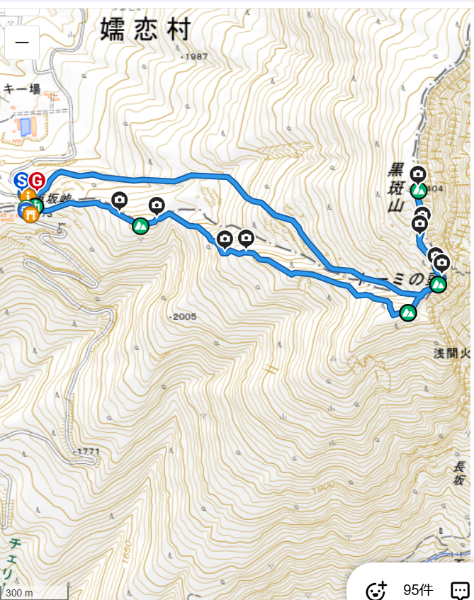 | 高峰高原ビジターセンター9:30…車坂山10:05-槍ヶ鞘11:35…トーミの頭11:56…黒斑山12:50…トーミの頭13:21ー高峰高原ビジターセンタースへP14:11 |