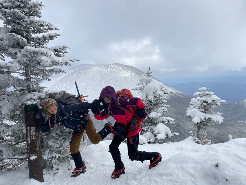 - なんと寒波到来中とはいえ人の多さにビックリです。トーミの頭・黒斑山山頂での写真は順番待ちの行列❗️トーミの頭に近づくにつれガスガス。ガトーショコラとの写真は諦めながら黒斑山へ向かいます。すると徐々にガスがキレ始めて、念願のガトーショコラとの写真がバッチリ撮れました。そして黒斑山ピークもGETして満足できる1日になりました。翌日の四阿山は天候不良により中止しました。