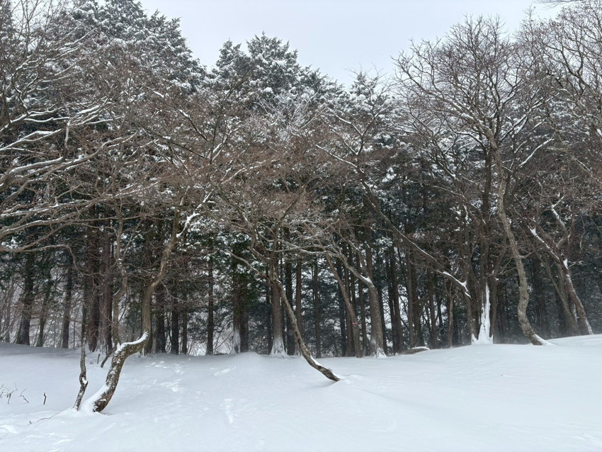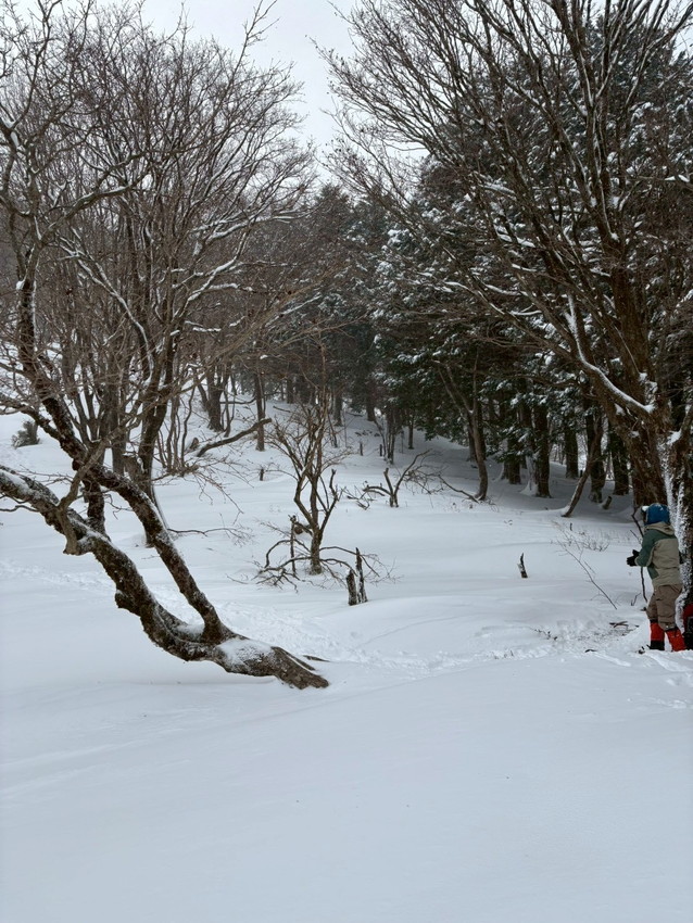 - スノーシューの練習が出来、美しい雪の景色が見られ、充実した楽しい山行でした。(あずき)・貝月山でスノーシューの予定が、藤原岳になりました。最初からスノーシューで!とてもよい練習になりました。