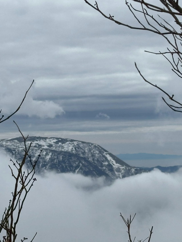 - 小貝月山で雲海の奥に、青空と遠くの山が見えました。曇り予報なのに、こんな美しい景色が見られて、嬉しかったです。(キッズあずき)