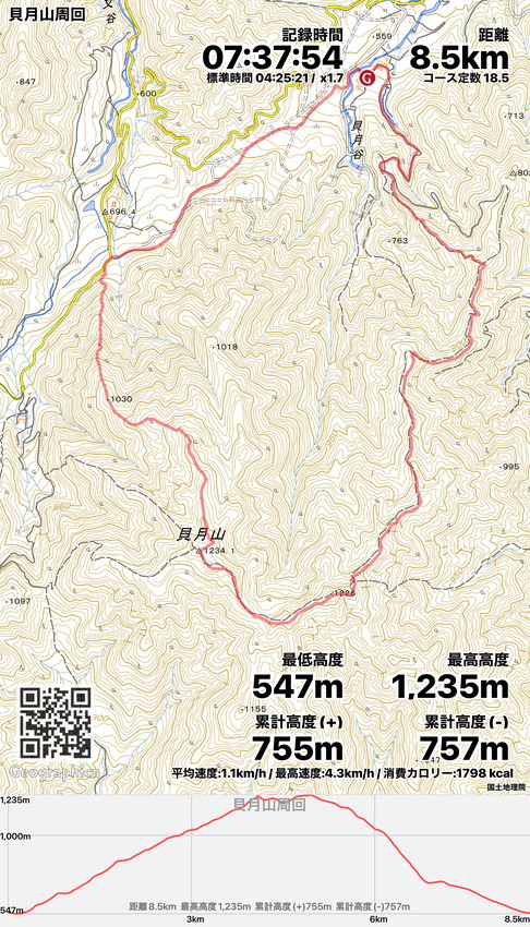 | JAいびがわ本店7:00⇒揖斐高原キャンピングフィールドP7:55→10:41小貝月山11:03→11:36貝月山12:30→駐車場15:05 |