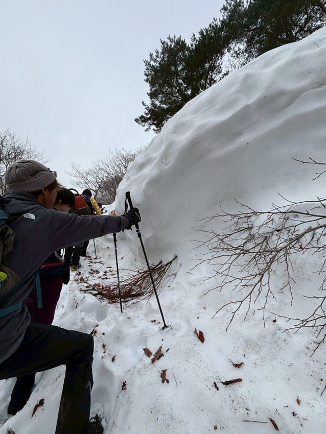 - 『経験がほぼない雪山へ高揚感と少しの緊張を抱き挑みましたが、皆さん優しくパワフルな方々でとても楽しく、初ワカン体験もでき思い出に残る山行になりました。ありがとうございました。』(ひろ)