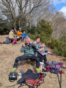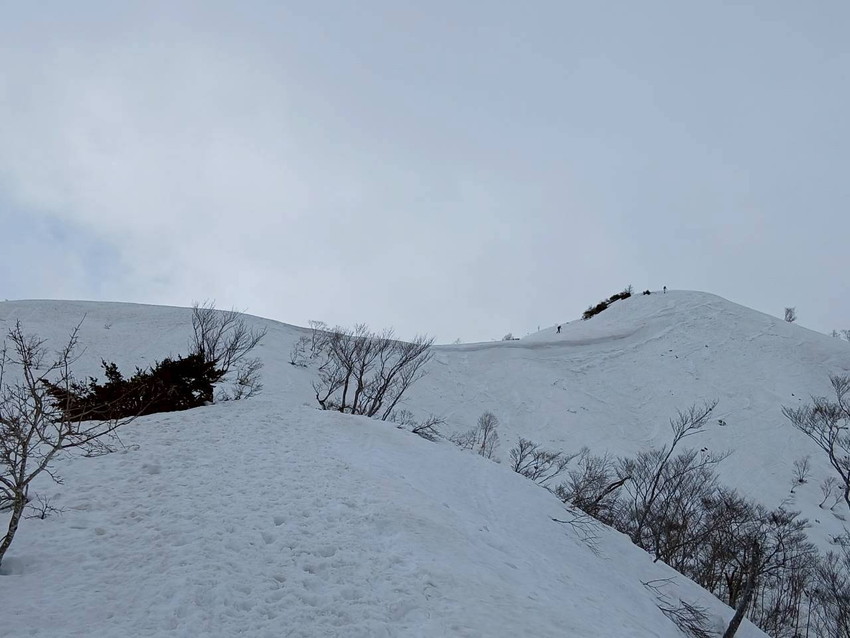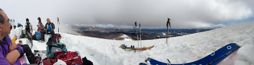 - 山頂にてひるがのから登ってきたワカン組とドッキングができてちょっとした感動を味わえました。ワカン組はピストン予定でしたが、川添さんの車が高須スノーパーク駐車場においてあるので、ワカン組も高須スノーパーク側に降りるコースを選ぶ事ができてこうゆう登山スタイルもありだなと思いました。