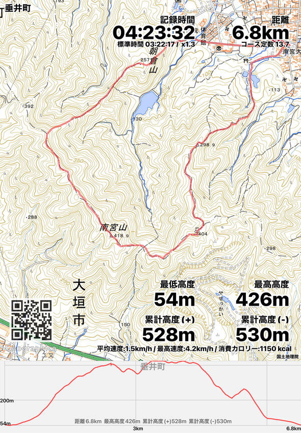 | 南宮山駐車場10:30→展望台11:40~12:15→南宮山12:40→朝倉山13:55→駐車場14:20 |