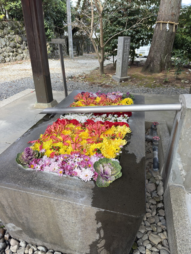 手水や には、お花がいっぱいで綺麗でした。