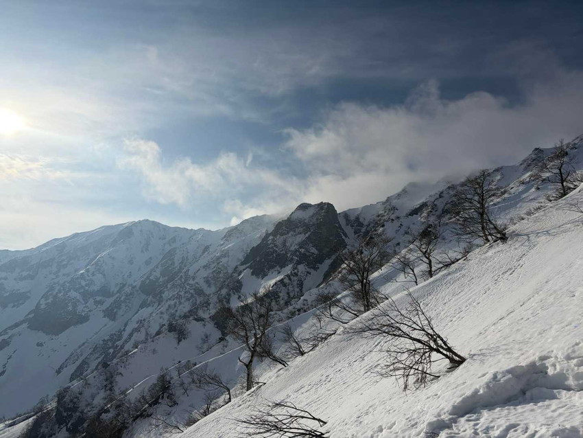 - 冬の伯耆大山登頂万歳、山頂はガスで視界無く残念、でもとても楽しい時間が過ごせました、皆さんありがとうございました。ルートは冬山初心者には適したコースで、トレースもあり装備はアイゼンでOK(松ちゃん)