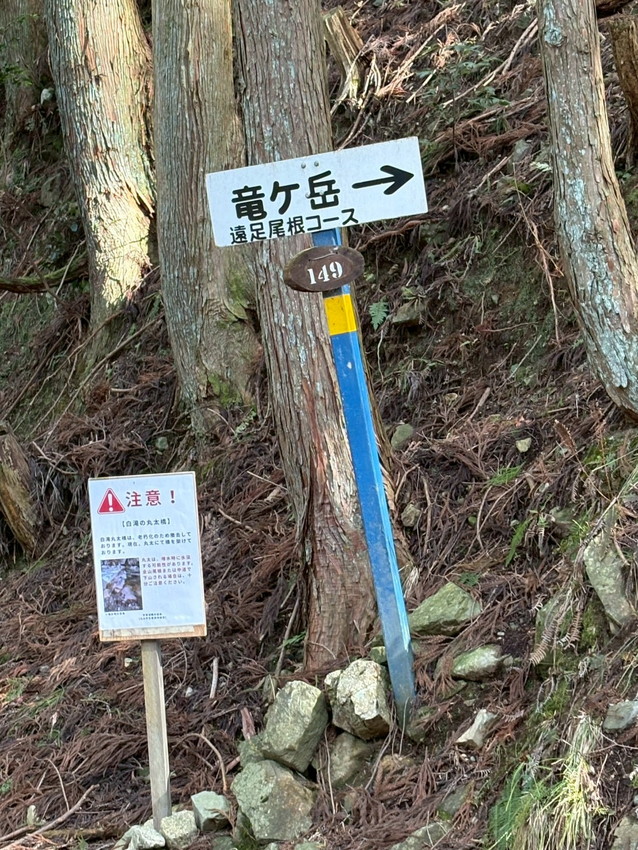 - 登山初心者を二人連れてスタートしましたが、二人とも趣味がマラソンで体力的に問題無し、 私のペースに付いて来れ、登り2時間30分 下り2時間 休憩30分 5時間で11kmの竜ヶ岳遠足尾根を登山出来ました。