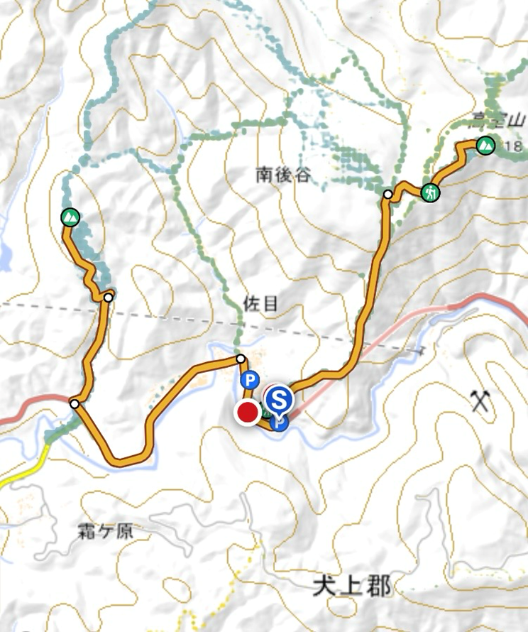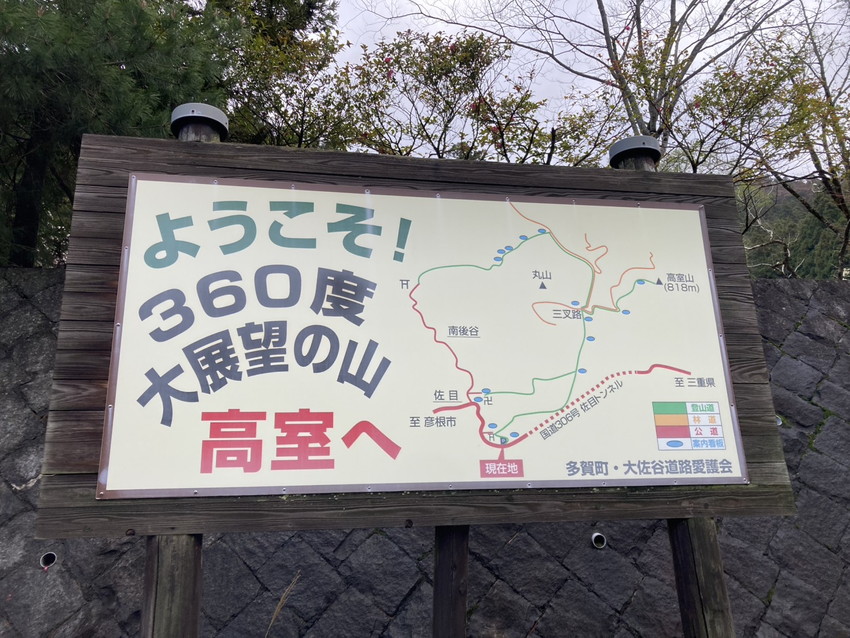 | 佐目自然公園駐車場8:09-高室山登山口9:13-高室山9:27-高室山登山口9:44-佐目自然公園駐車場10:25-(車移動)-高畑山登山駐車場10:40:-高畑山11:25(昼食)11:55:-駐車場12:23 |