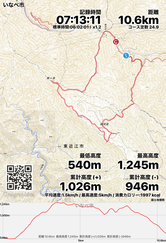| 上石津総合体育館5:00→鞍掛トンネル東駐車場5:30→コグルミ谷登山口6:00→天ヶ平7:25→御池岳8:25→奥の平8:40→天狗鼻8:55(この辺りでお昼)→鈴ヶ岳11:15→鈴北岳11:55→鞍掛峠12:50→鞍掛トンネル西登山口13:05→鞍掛トンネル東駐車場13:20→上石津総合体育館14:00 |